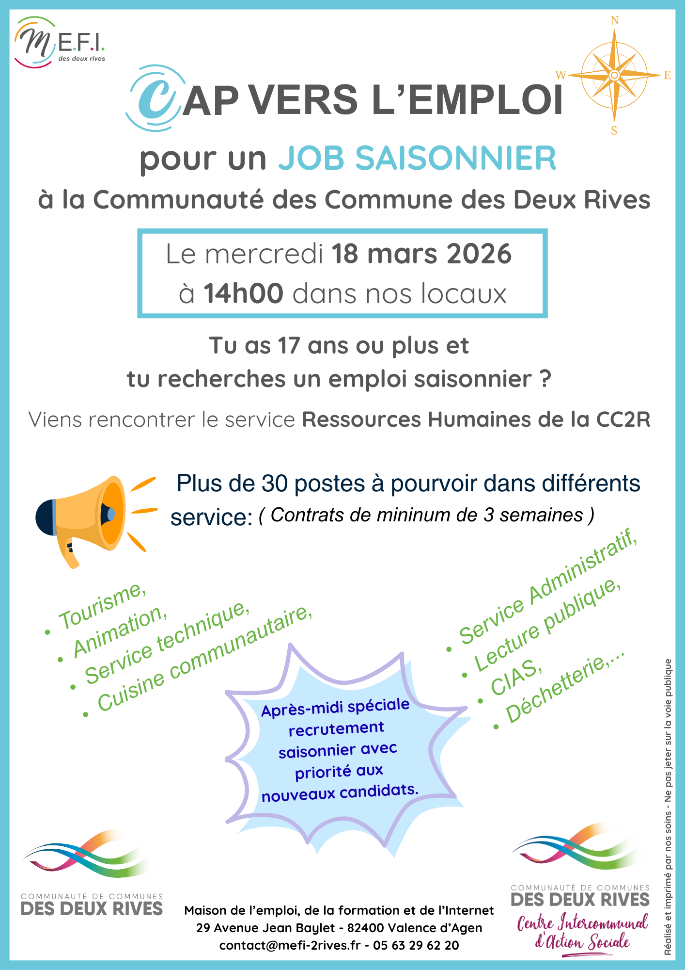 Tu as 17 ans ou + et tu recherches un job saisonnier ?