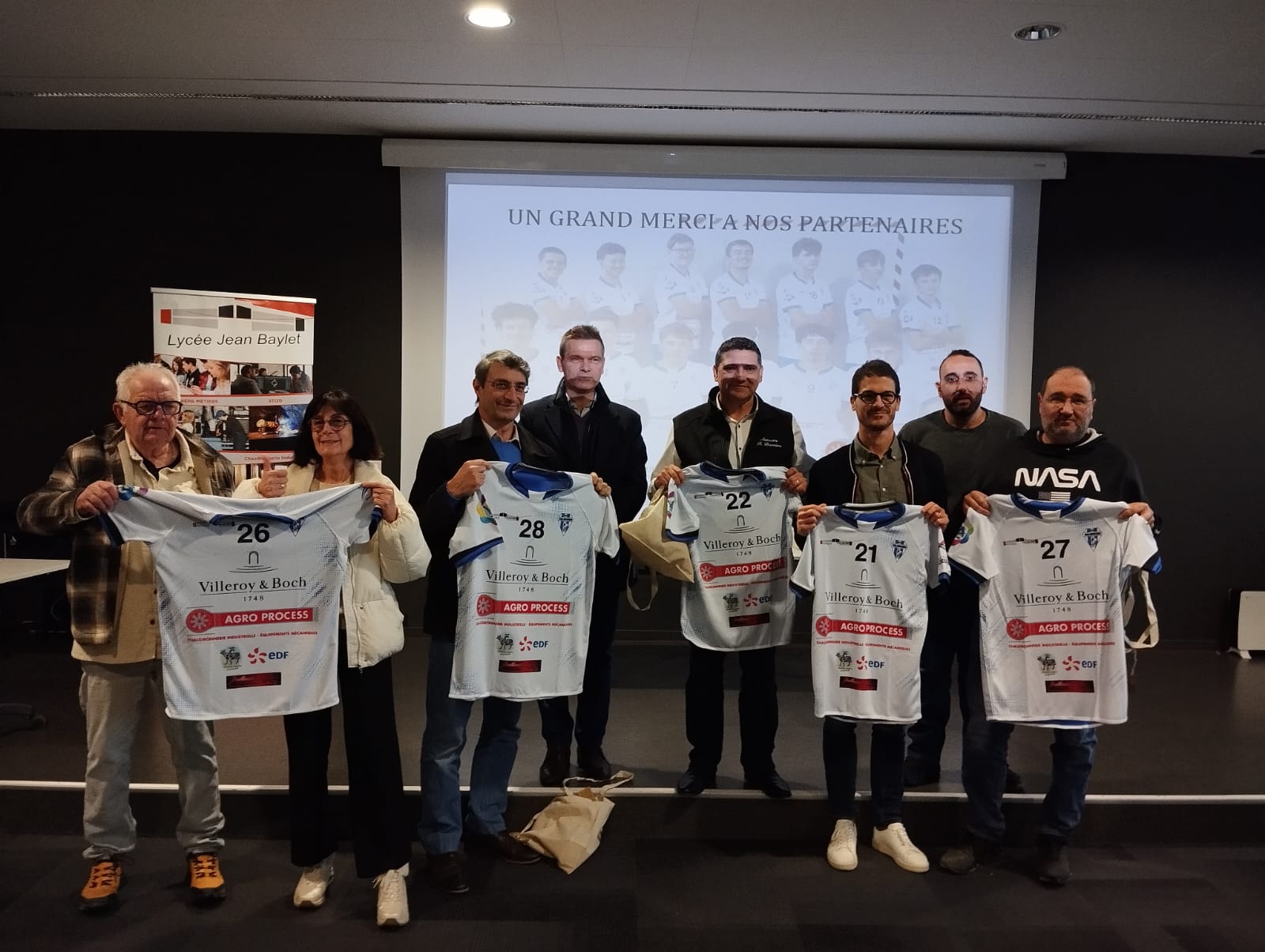 Les élèves de la section rugby ont remis des maillots aux entreprises sponsors en guise de remerciement